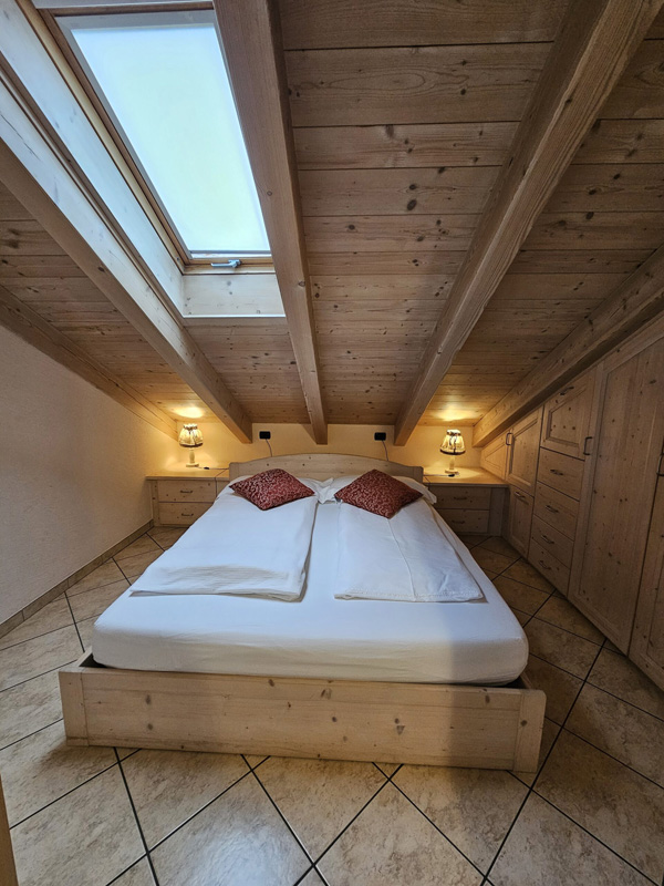 45 m² - 1 ložnice s manželskou postelí či 2 samostatnými lůžky, obývací pokoj s kuchyňským koutem a rozkládacím gaučem pro 2 osoby, sociální zařízení se sprchou, balkon; apartmán se nachází v podkroví