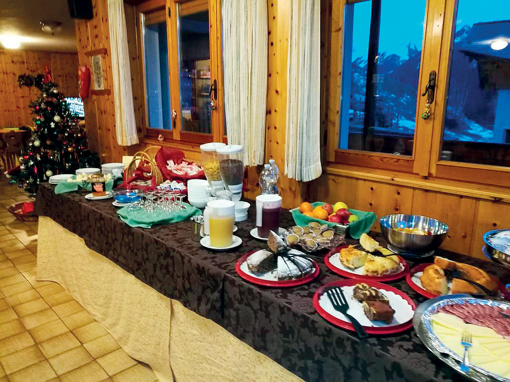 servírované menu s výběrem z 1 až 2 teplých předkrmů a 2 hlavních jídel se 2 přílohami, studené předkrmy, zpravidla saláty a dezerty formou bufetu či servírované, nápoje za poplatek