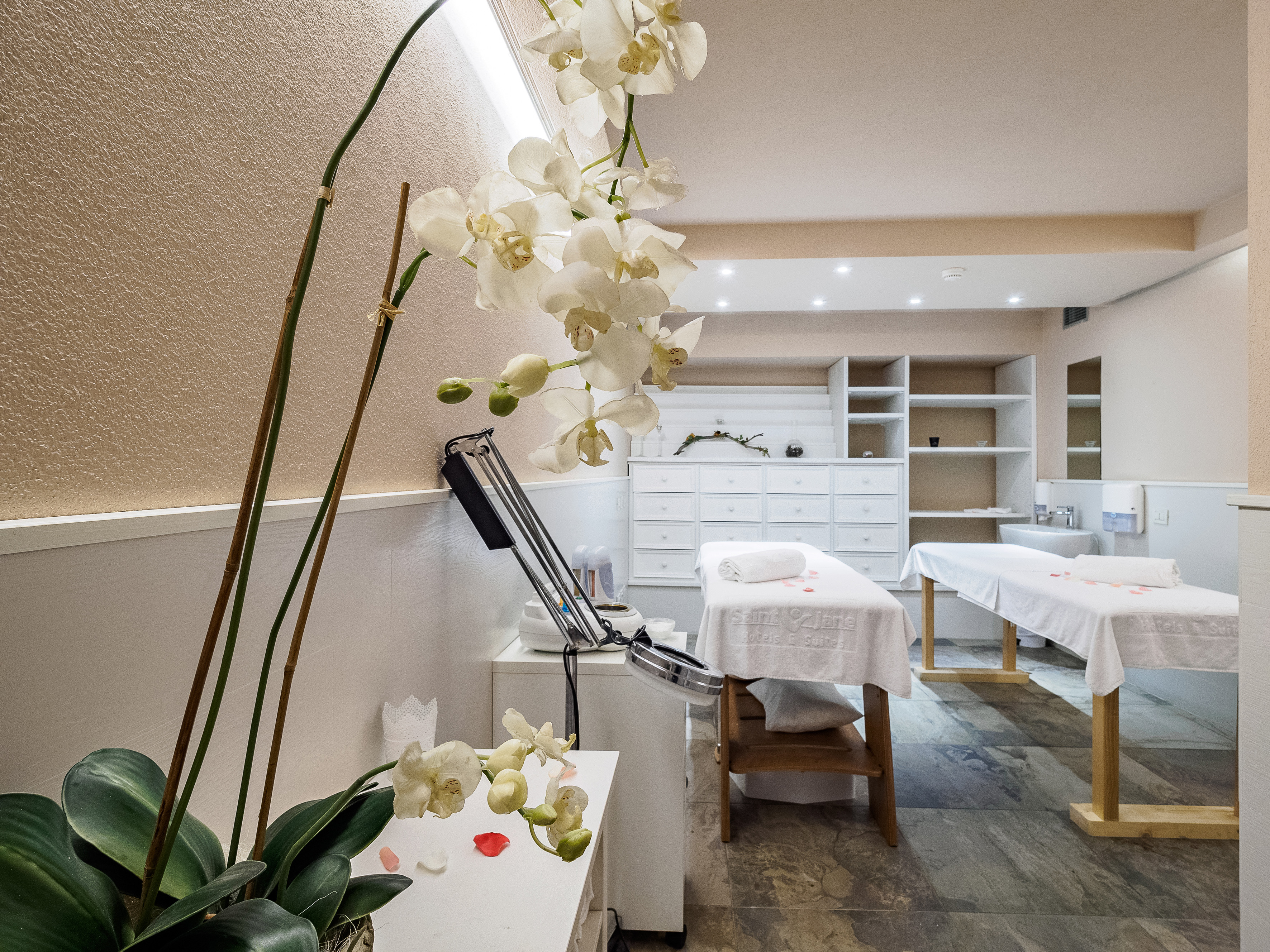 vířivka# až pro 4 osoby, sauna#, pára#, relaxační koutek# s lehátky, masáže*, kosmetické služby*; služby označené # nemohou využívat děti do 16 let; v rámci pobytu na minimálně 7 nocí 1 vstup / osoba v ceně, další vstupy či u pobytů na méně nocí za poplatek