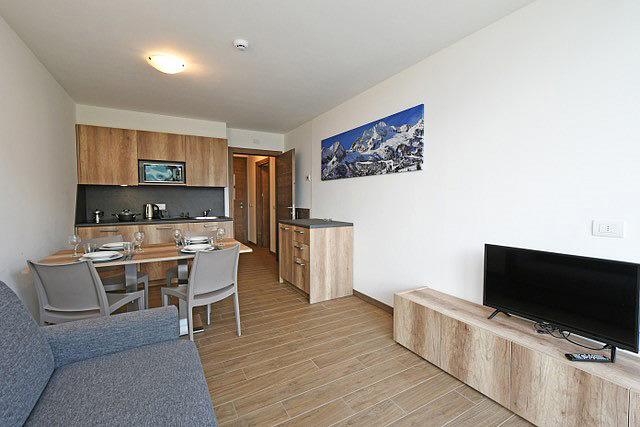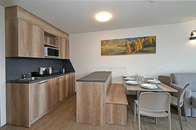 50 až 68 m² - 1 ložnice s manželskou postelí, 1 ložnice se 2 samostatnými lůžky, obývací pokoj s kuchyňským koutem a rozkládacím gaučem pro 2 osoby, 2 x sociální zařízení, zpravidla balkon či terasa