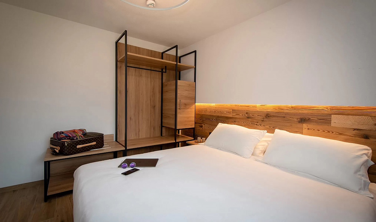 50 m² - 1 ložnice s manželskou postelí, 1 menší ložnice se 2 samostatnými lůžky, obývací pokoj s kuchyňským koutem a rozkládacím gaučem pro 2 osoby, sociální zařízení zpravidla se sprchou, balkon; některé apartmány se nachází v přízemí s předzahrádkou - jsou vhodné i jako bezbariérové
