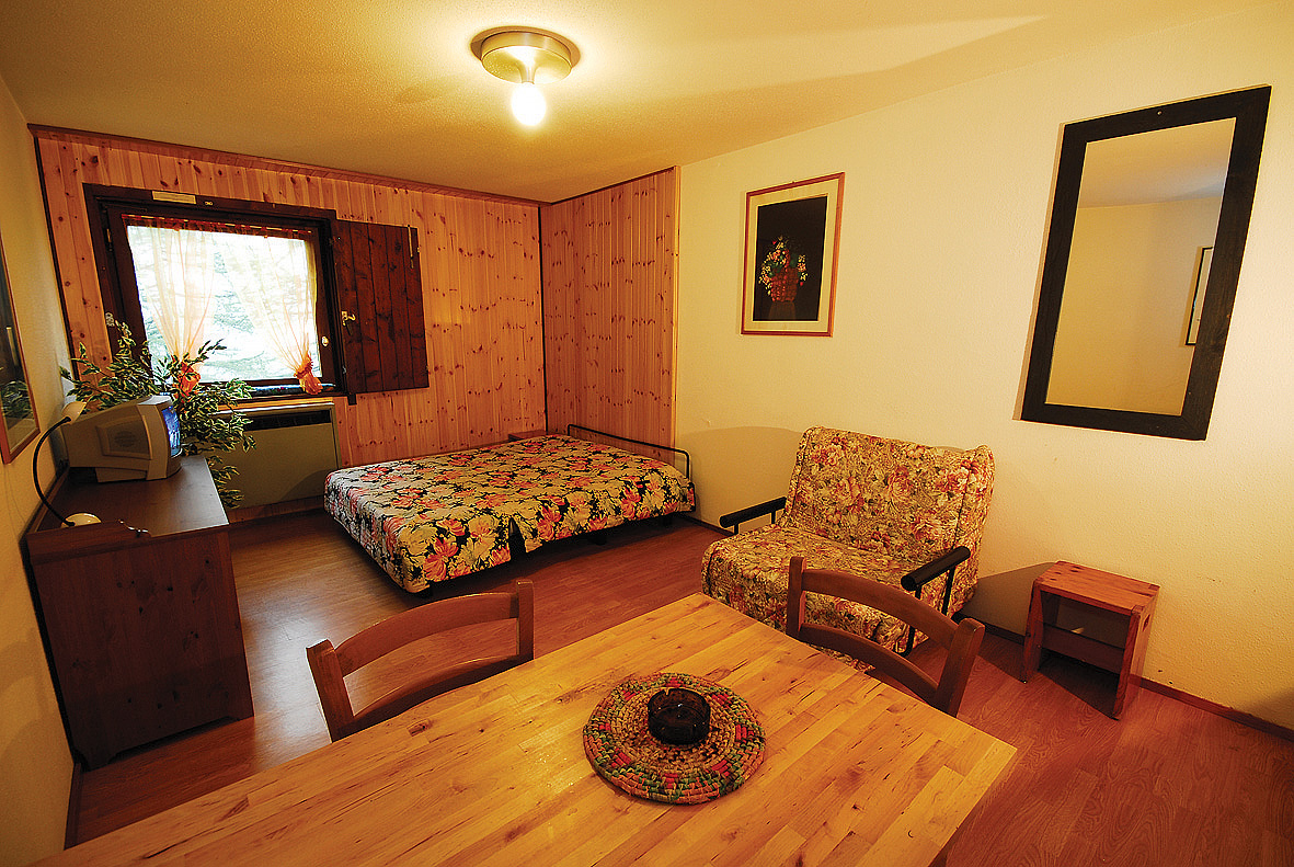 36 m² - 1 ložnice se 2 samostatnými lůžky či palandou, obývací pokoj s rozkládacím gaučem pro 2 osoby (možno i typ "šuplík"), samostatná či částečně oddělená kuchyňka, sociální zařízení, zpravidla balkon