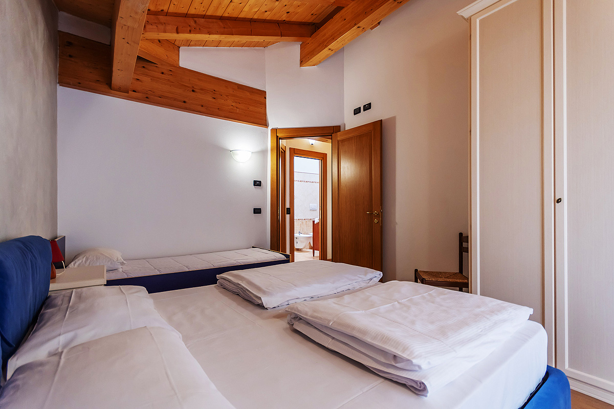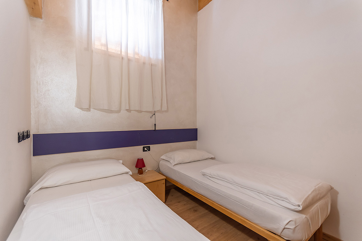 90 m² - 1. podlaží apartmánu - obývací pokoj s kuchyňským koutem a rozkládacím gaučem pro 2 osoby, sociální zařízení, balkon; 2. podlaží apartmánu – 1 ložnice s manželskou postelí a 1 samostatným lůžkem, 1 ložnice se 2 samostatnými lůžky, 1 ložnice s 1 samostatným lůžkem a 1 vyvýšeným lůžkem, sociální zařízení