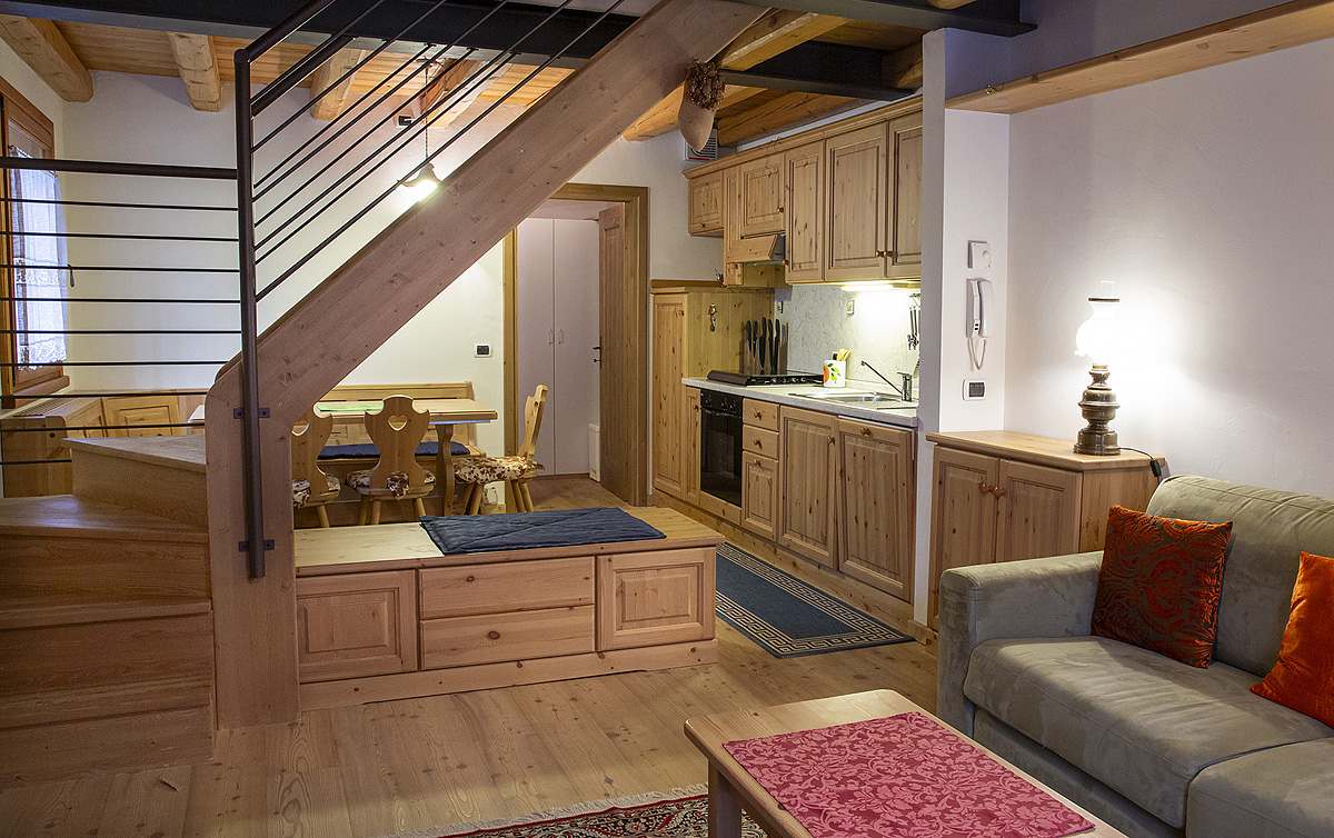 trilo 6 – přízemí apartmánu: obývací pokoj s kuchyňským koutem a rozkládacím gaučem pro 2 osoby, sociální zařízení se sprchou, předzahrádka, 1.podlaží apartmánu: 1 ložnice s manželskou postelí, 1 ložnice se 2 samostatnými lůžky, sociální zařízení se sprchou
