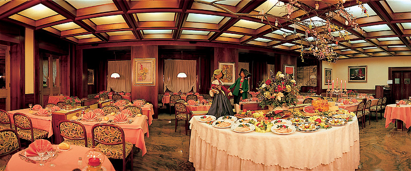 recepce / lobby, restaurace, restaurace vyhrazená pro hotelové hosty, bar, vinotéka, společenská místnost s krbem, společenská místnost s TV, 7x týdně animační programy (v italském jazyce), uvítací přípitek, wi-fi připojení k internetu, úschovna lyží a lyžařských bot (přes ulici naproti hlavnímu vchodu do hotelu), výtah, veřejné parkování v blízkosti*, garážová stání* (vzdálenost 400 m, počet míst omezen), vyhrazená venkovní parkovací stání 200m od hotelu, hotelový miniskibus, služby hotelové prádelny*