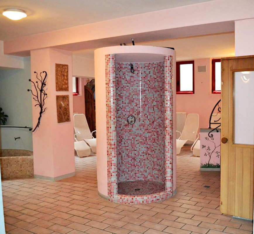 vířivka, sauna, pára, multifunkční sprcha, Kneippův chodník, relaxační koutek s lehátky, posilovací koutek