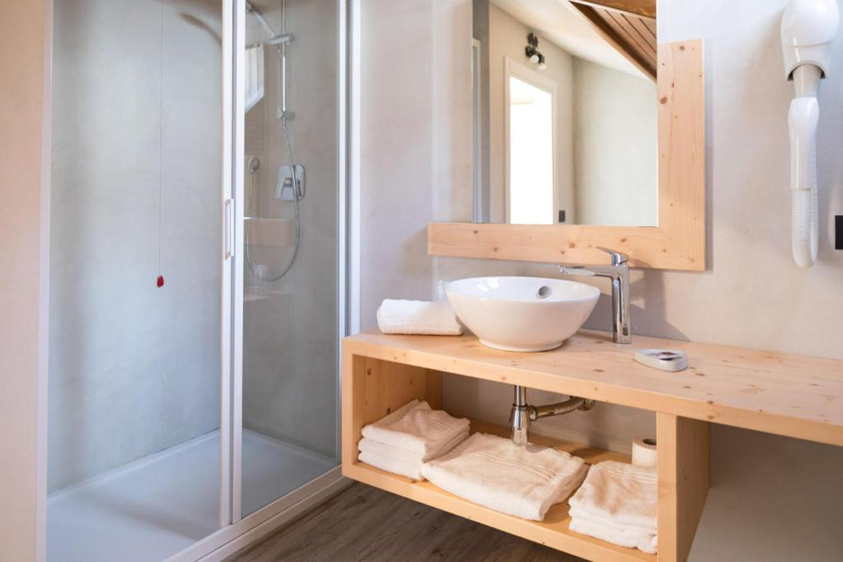 20 m² - pokoj s manželskou postelí a 1 samostatným lůžkem a případně rozkládacím gaučem pro 1 osobu, sociální zařízení se sprchou; pokoj po kompletní rekonstrukci