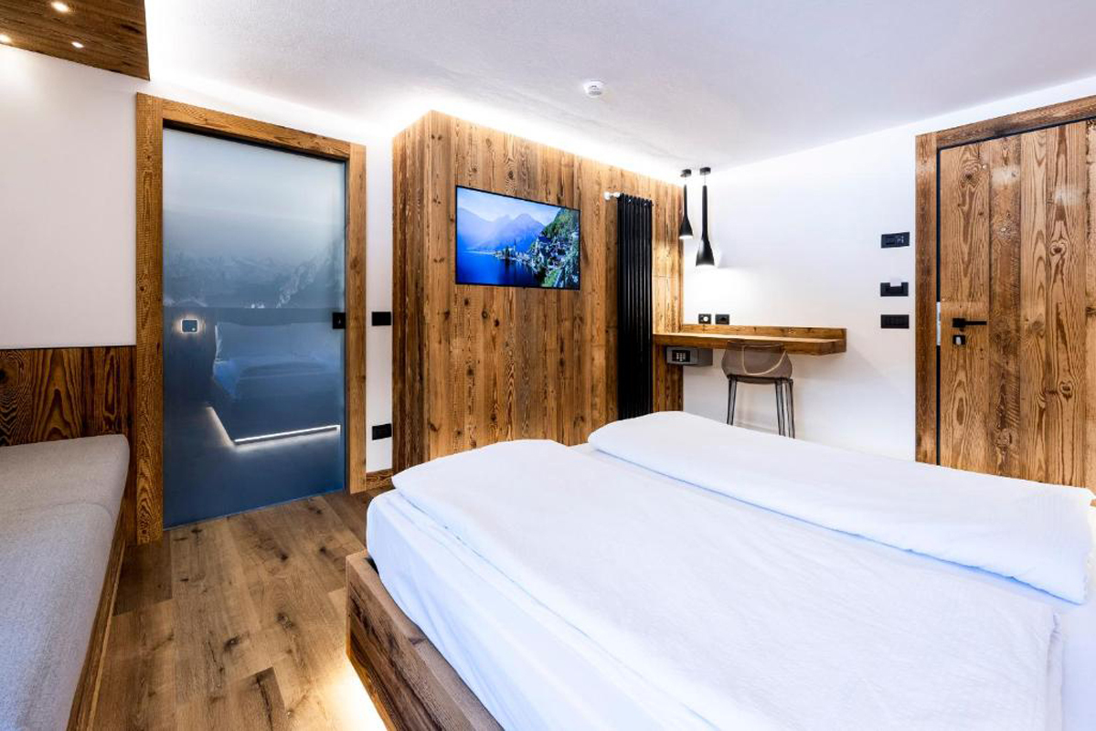 12 m² – pokoj s manželskou postelí s výhledem na jezero, sauna, sociální zařízení se sprchou; pokoj po kompletní rekonstrukci