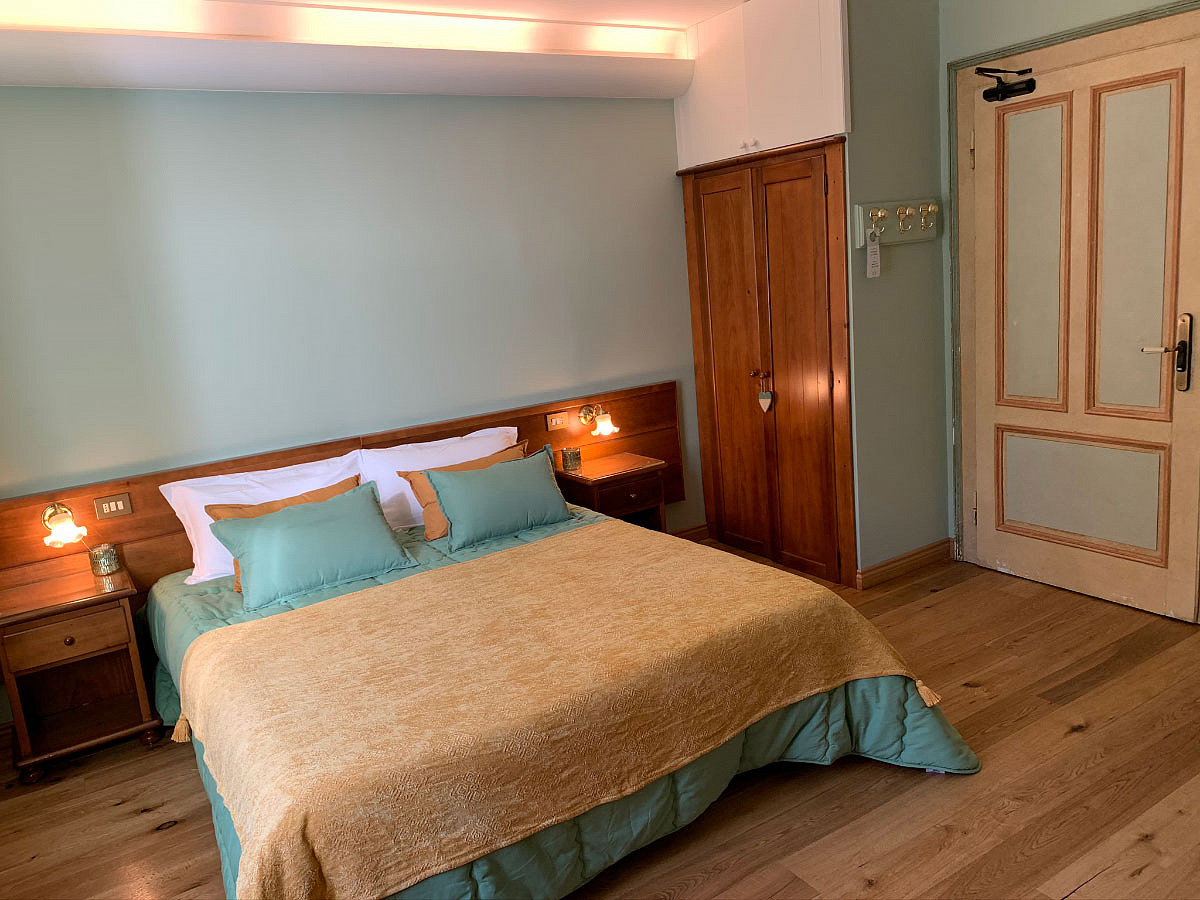 18 m² - pokoj s manželskou postelí či 2 samostatnými lůžky, sociální zařízení se sprchou, zřídka balkon