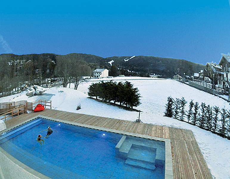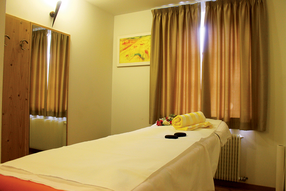 venkovní vyhřívaný bazén 10 x 4 m s vířivkou, vířivka#* až pro 2 osoby, finská sauna#, aromatická sauna#, pára#, relaxační koutek# s lehátky, masáže#*, kosmetické služby#*, posilovací koutek#; služby označené # mohou využívat jen osoby od 18 let