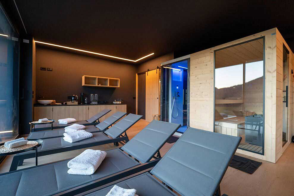 sauna*, parní lázeň se sprchou*, relaxační kout* s lehátky a bylinkovými čaji