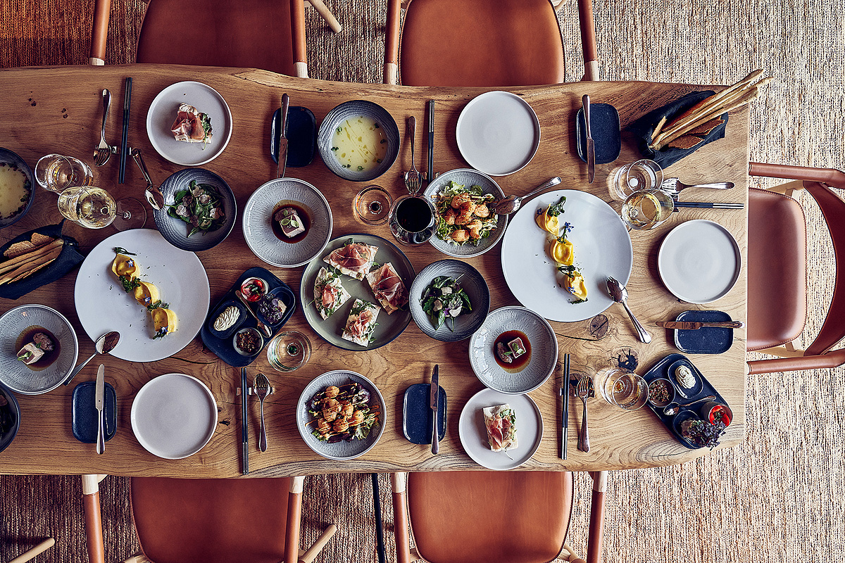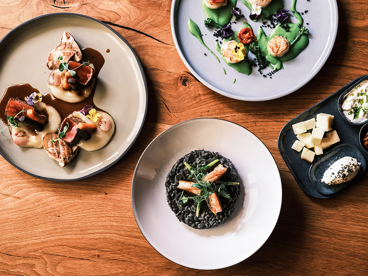 servírované menu s výběrem ze 3 až 4 studených či teplých předkrmů a 3 až 4 hlavních jídel s přílohou, salátový bufet, servírovaný dezert, nápoje za poplatek