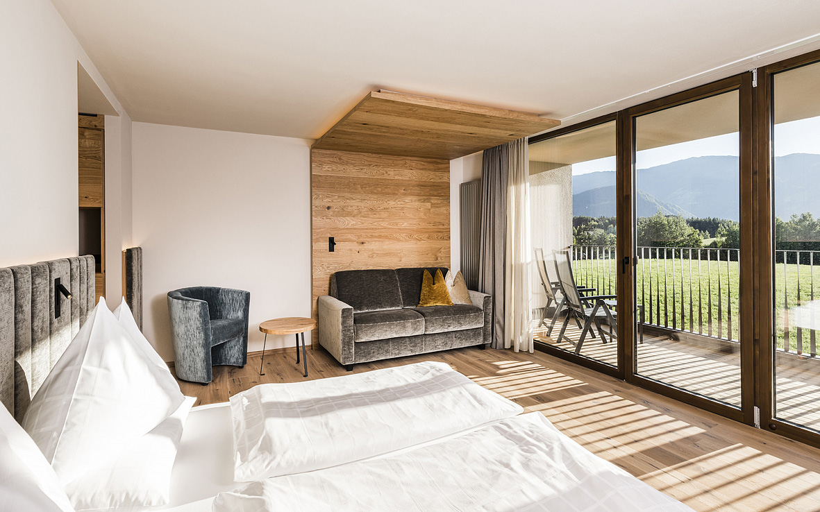 32 m² - pokoj s manželskou postelí či 2 samostatnými lůžky a rozkládacím gaučem pro 2 osoby, sociální zařízení, balkon