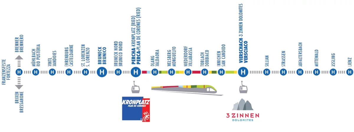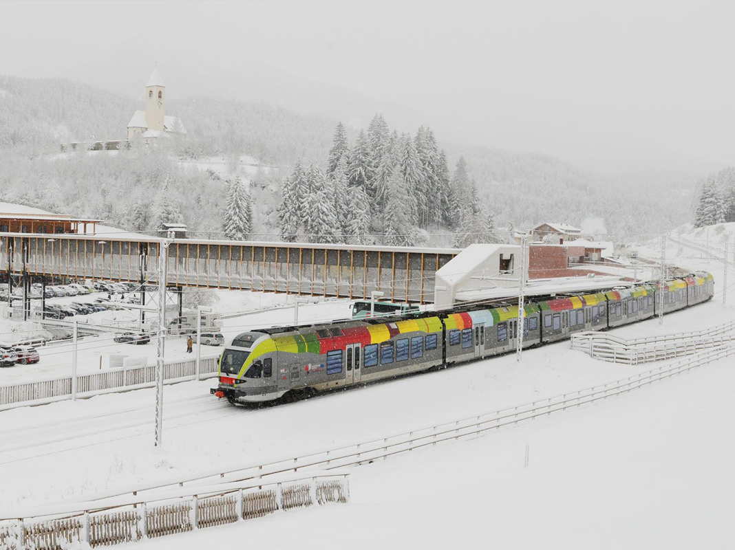 výborná dostupnost lyžování díky zastávce skivlaku Ski Pustertaler Express jen pár kroků od residence aneb do 20 minut na sjezdovce