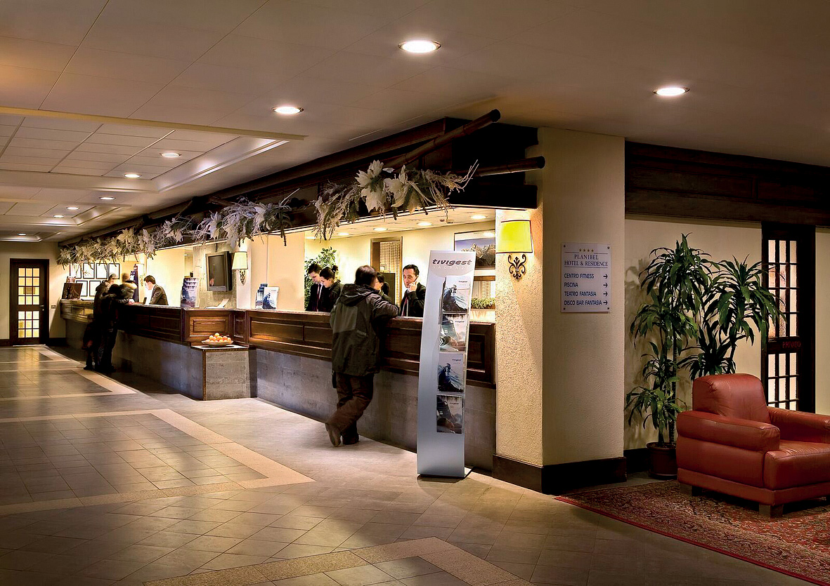 recepce / velká lobby, restaurace, restaurace à la carte / pizzerie, bar, pub, piano bar, společenská místnost / karetní místnost, televizní místnost, hotelové divadlo, seminární místnosti, kongresový sál, miniklub (v italském jazyce), animační programy (v italském jazyce), wi-fi připojení k internetu ve většině společných prostor, hotelový trezor, úschovna lyží a lyžařských bot, výtah, veřejné parkování*, garážová stání*, služby hotelové prádelny*, minimarket