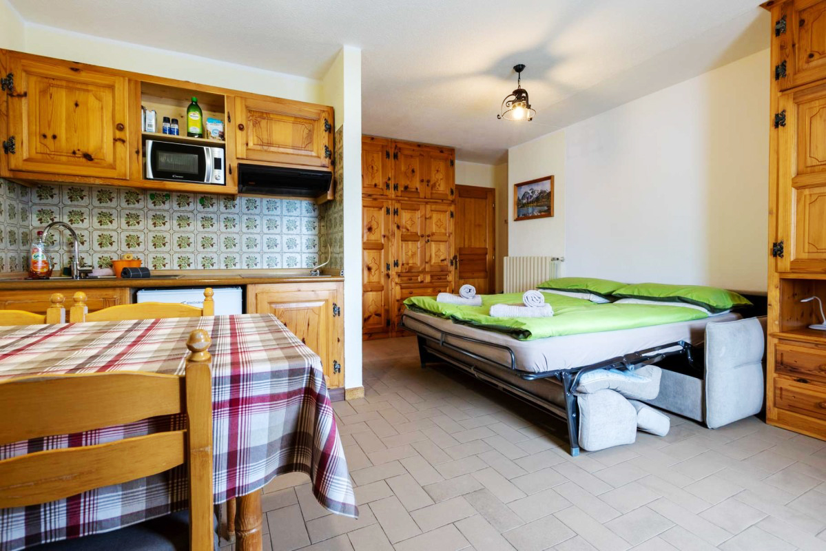 obývací pokoj s kuchyňským koutem a rozkládacím gaučem pro 2 osoby, sociální zařízení se sprchou