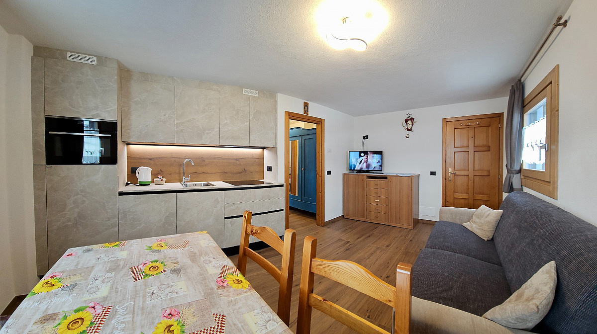 bilo 4 - nově zrekonstruovaný apartmán; 1 ložnice s manželskou postelí, obývací pokoj s kuchyňským koutem a rozkládacím gaučem pro 2 osoby, sociální zařízení se sprchou; apartmán se nachází v přízemí s balkonem