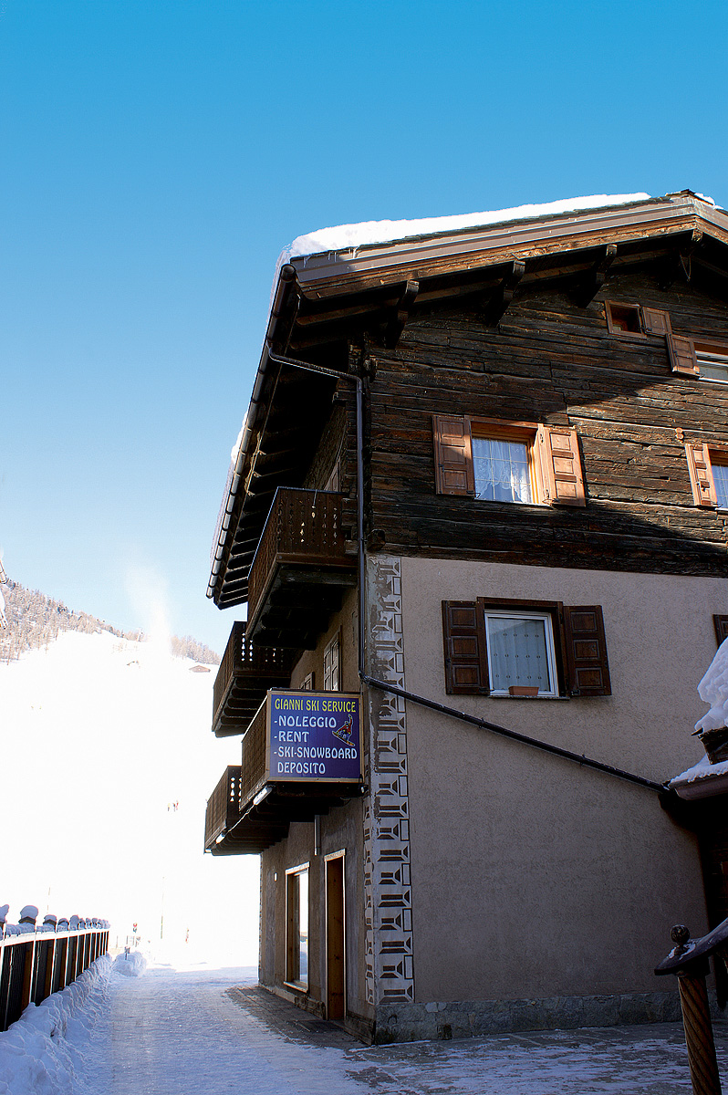pro Livigno typický apartmánový dům ležící přímo v centru pěší zóny a jen, a to doslova, "pár kroků" od sjezdovky a kabinové lanovky