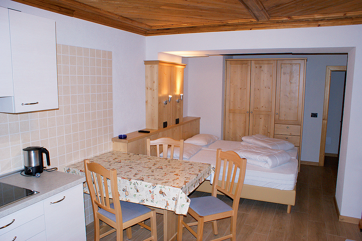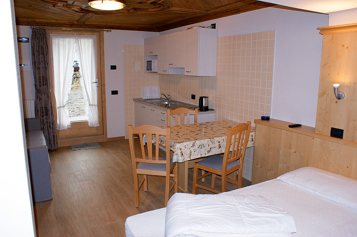 35 m² - obývací pokoj s kuchyňským koutem, manželskou postelí a případně rozkládacím gaučem pro 1 osobu, sociální zařízení; samostatný vchod