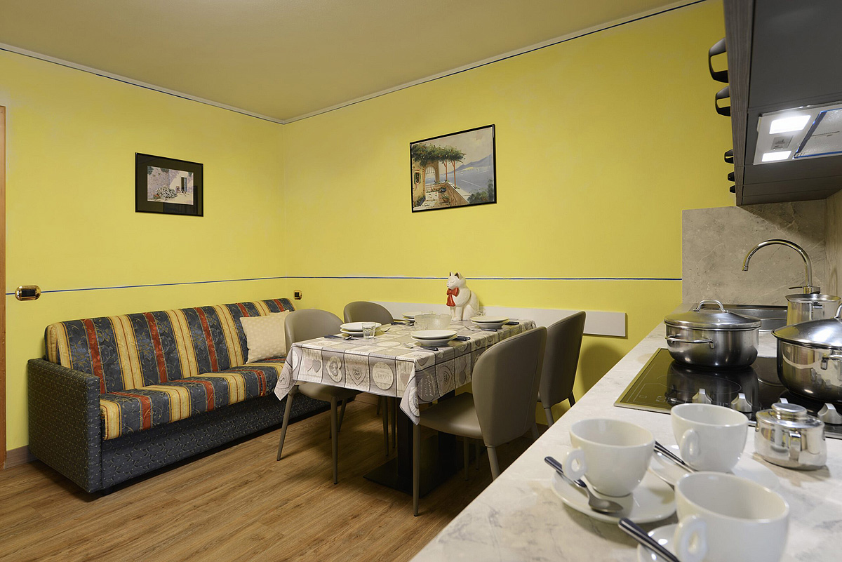 42 m² - 1 ložnice s manželskou postelí, 1 ložnice se 2 samostatnými lůžky, obývací pokoj s kuchyňským koutem a rozkládacím gaučem pro 1 osobu, sociální zařízení, balkon