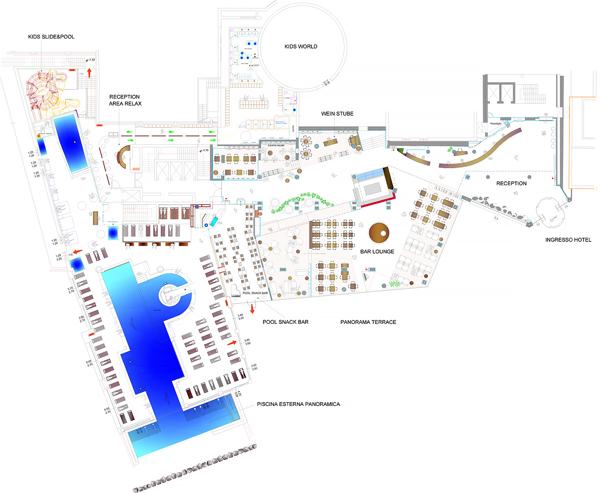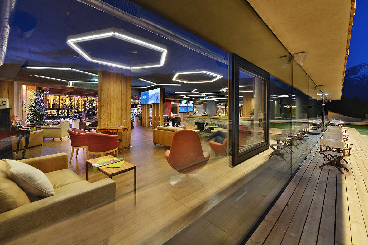 nově zrekonstruovaná recepce / lobby, restaurace, nová restaurace "Aria" (à la carte), 3 bary (1 ve wellness centru, 1 u bazénu a 1 v lobby), společenská místnost s TV sat., sluneční terasa s lehátky, dětský koutek s hlídací službou, animační programy, wi-fi připojení k internetu, úschovna lyží, parkoviště a garážové stání (zdarma do vyčerpání míst), nabíjecí stanice v garáži, půjčovna lyžařského vybavení, lyžařská škola (možnost zařízení), hotelový transfer (zdarma v době 20:00 - 24:00 mimo jiné i do hotelu Bivio - Bivio bar, či k hotelu Alpino Lodge; časy transferu můžou být kdykoliv během sezóny změněny)