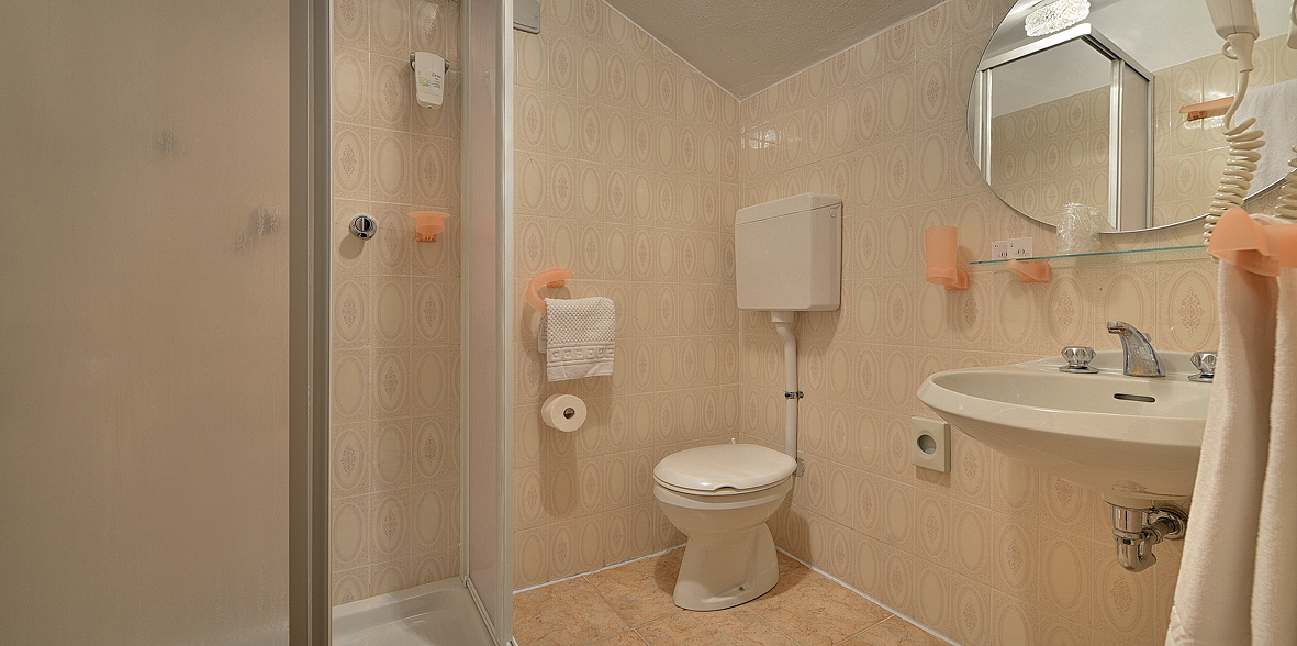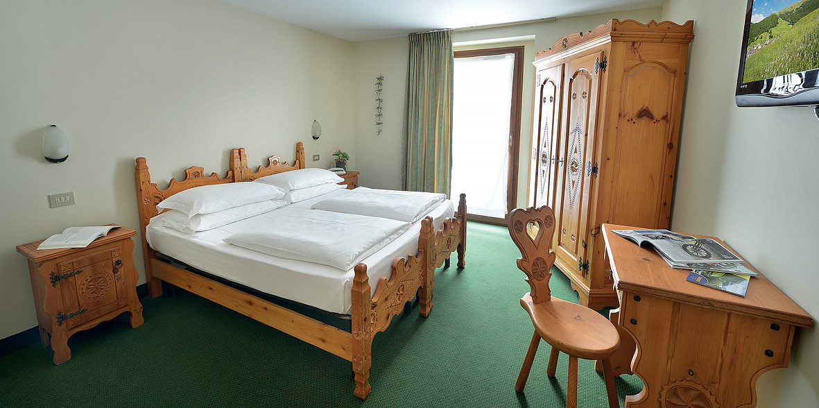 pokoj s manželskou postelí či 2 samostatnými lůžky, sociální zařízení zpravidla se sprchou, balkon (pouze u některých pokojů)