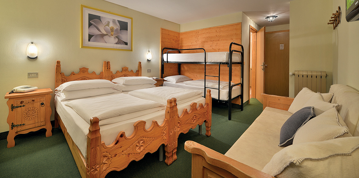 pokoj s manželskou postelí či 2 samostatnými lůžky a palandou, sociální zařízení zpravidla se sprchou, balkon (pouze u některých pokojů)