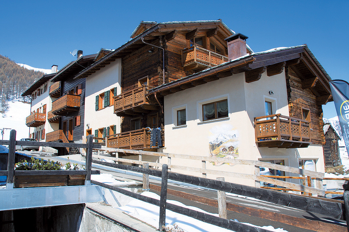 ideální pěší vzdálenost od lyžařského přepravního zařízení, zpravidla na jižní straně skiareálu Carosello