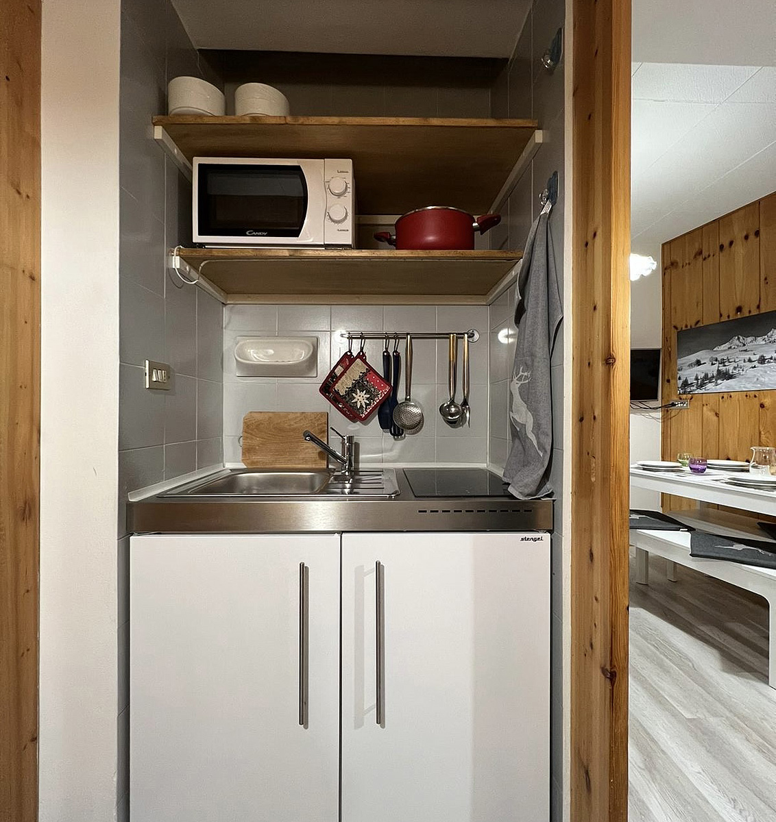 1 ložnice s manželskou postelí a jedním samostatným lůžkem, menší obývací pokoj s kuchyňským koutem, sociální zařízení