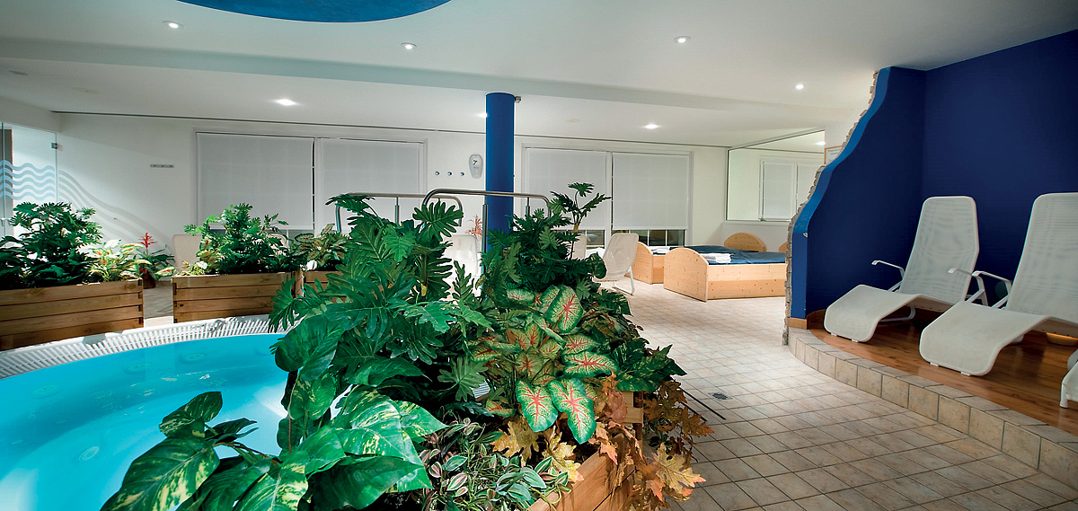 bazén#*, vířivka#* až pro 6 osob, finská sauna#*, pára#*, relaxační koutek#* s lehátky, vyhřívanými vodními lůžky a hudbou, masáže*, kosmetické služby*; služby označené # nemohou využívat děti do nedovršených 18 let; v rámci relaxačního centra jsou zdarma nabízeny též ručníky, osušky a bylinkové čaje