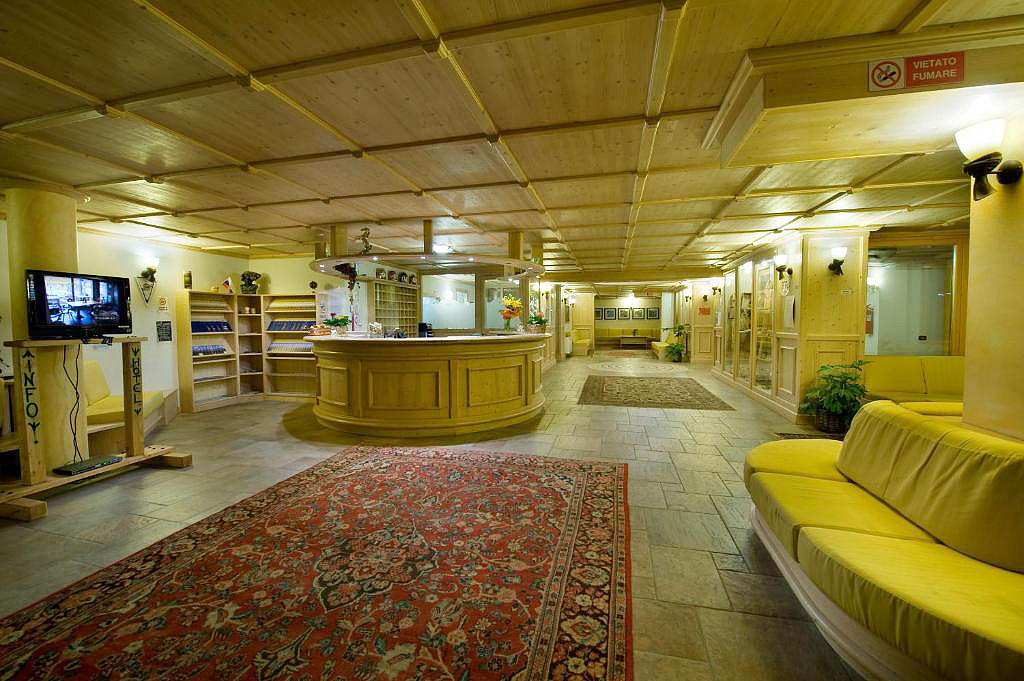 recepce / velká lobby s TV sat. / wi-fi připojení k internetu, restaurace, bar s TV sat. a DVD, společenská místnost, seminární místnost / kongresový sál až pro 100 osob s projekční technikou, dětský koutek* (od 4 do 12 let), mini klub# (od 4 do 12 let; v italském jazyce), 2-6x týdně animační programy#(v italském jazyce), uvítací přípitek# , internet point*, videohry, úschovna lyží a lyžařských bot, 2x výtah, vyhrazené parkoviště (počet míst omezen), garážová stání (1 auto / pokoj či apartmán, další za poplatek - rezervace nutná předem), hotelový mini skibus, služby hotelové prádelny*, lyžařská škola, služby označené # jsou zahrnuté v ceně virtuální klubové karty a jsou k dispozici do 15.03.
