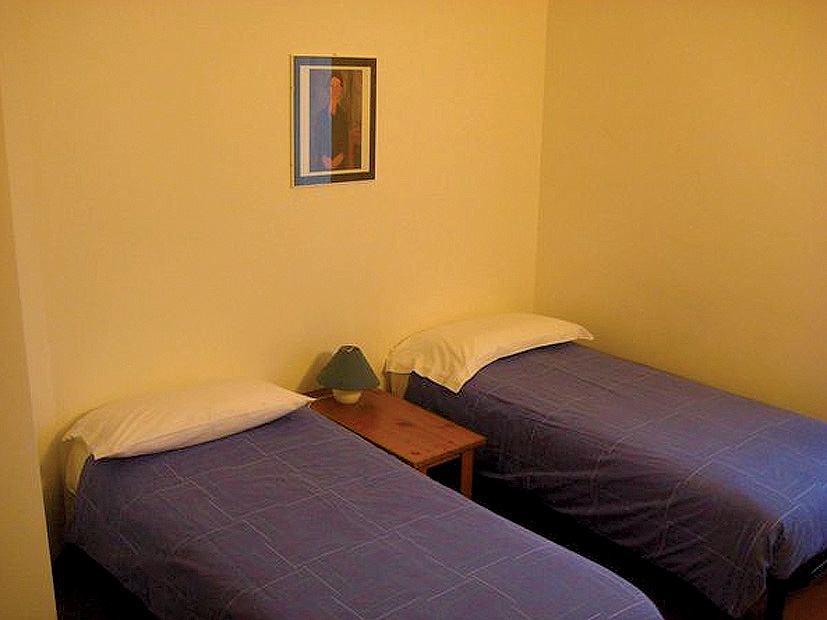 trilo 6 typ B - 65 m² - 1 ložnice s manželskou postelí, 1 ložnice se 2 samostatnými lůžky, obývací pokoj s kuchyňským koutem a rozkládacím gaučem pro 2 osoby, 2x sociální zařízení, balkon