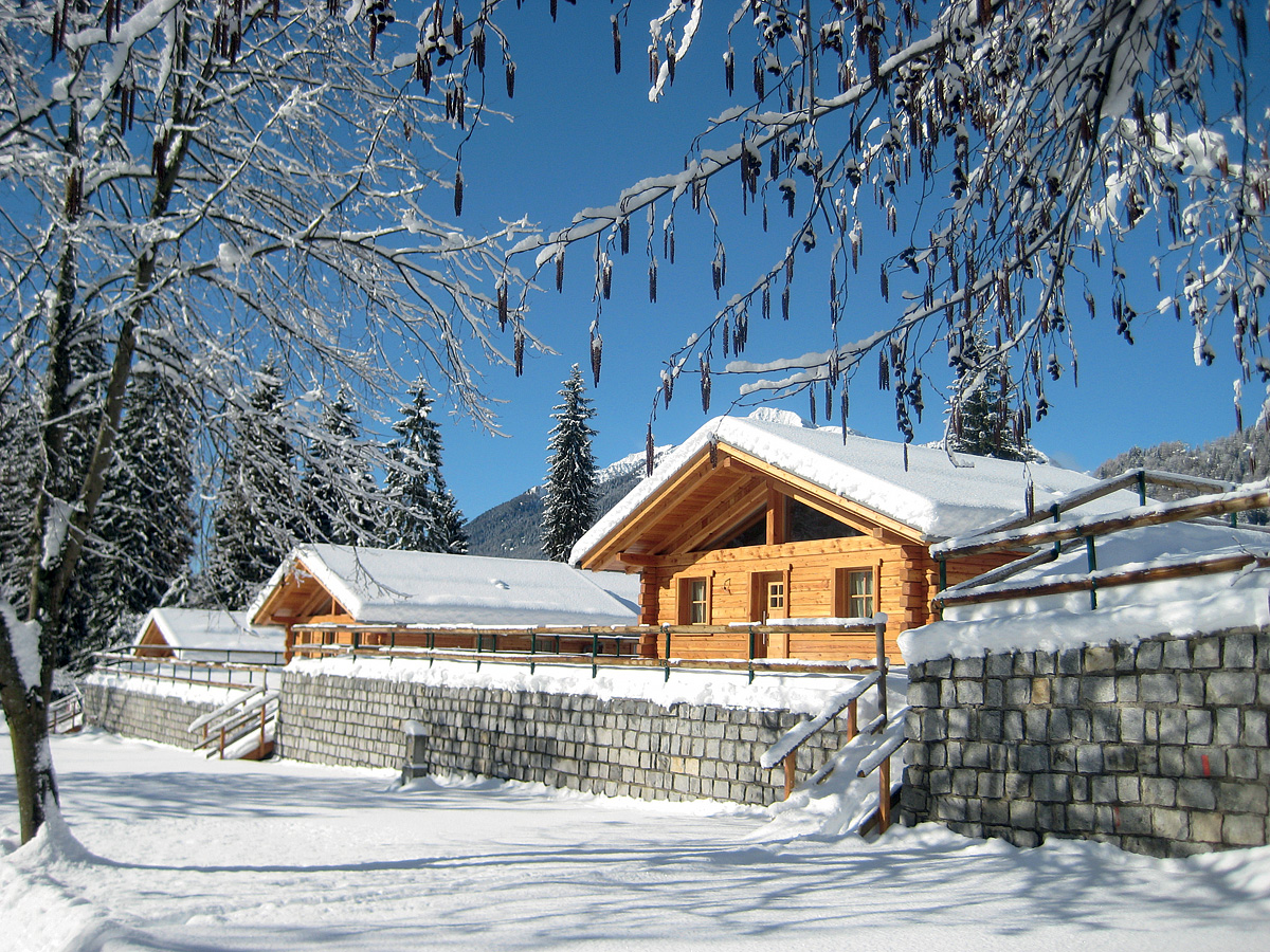 luxusní horské chatky postavené na principech bio architektury