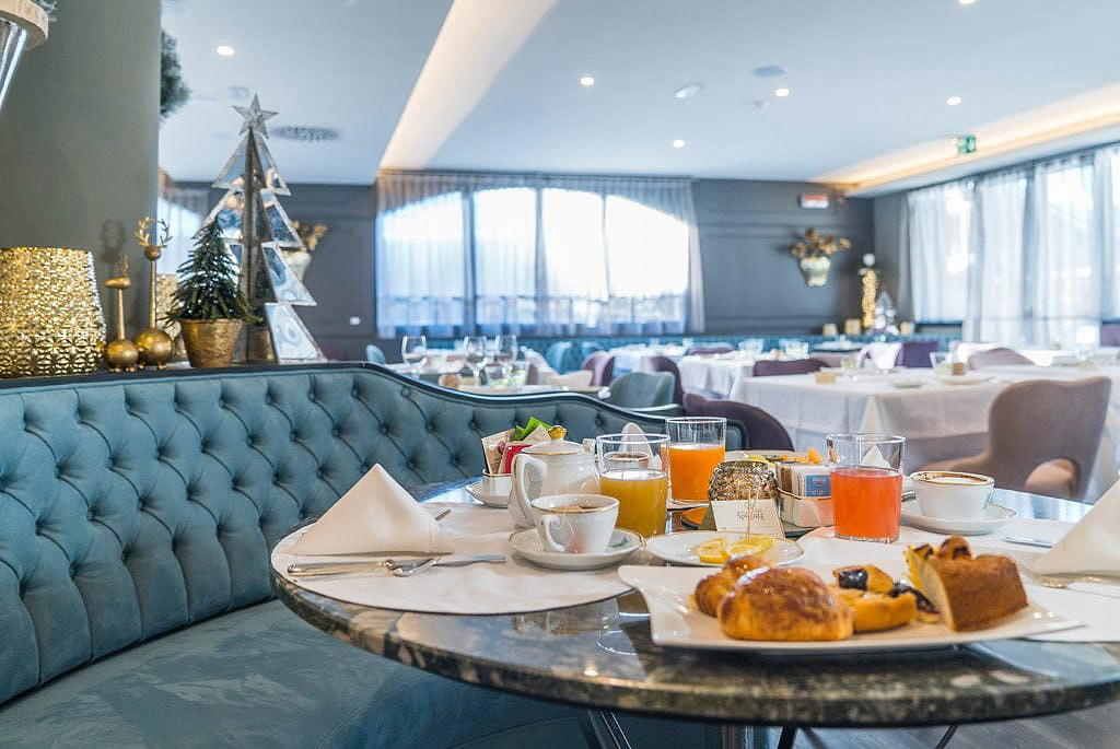 servírované menu s výběrem z 5 teplých předkrmů, 5 prvních chodů, 5 hlavních chodů, 4 dezertů, studené předkrmy, saláty a ovoce formou bufetu, nápoje za poplatek