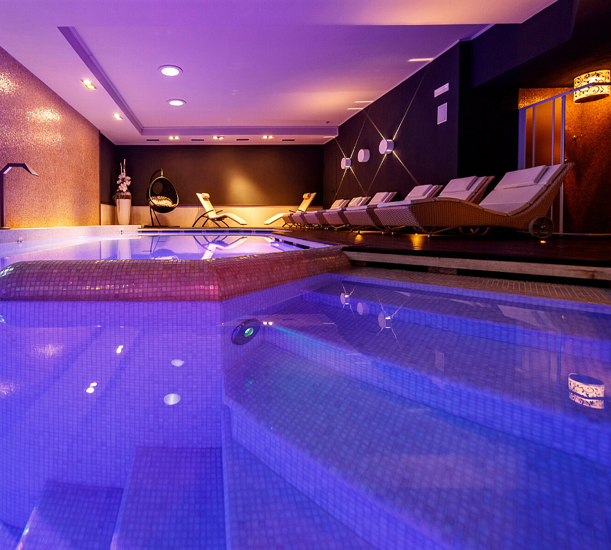 bazén s vířivkou, umělým vodopádem a lehátky, finská sauna#, pára#, multifunkční sprcha#, relaxační koutek# s lehátky a hudbou, masáže*, kosmetické služby*, posilovna, soukromá wellness zóna s vířivkou*; služby označené # mohou využívat děti až od 16 let; v rámci relaxačního centra jsou zdarma nabízeny též bylinkové čaje