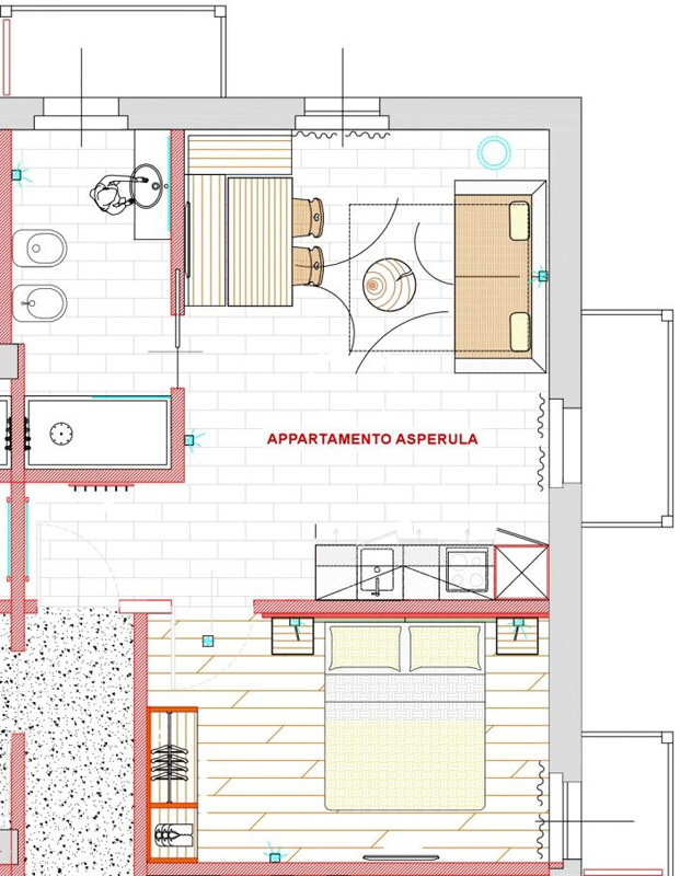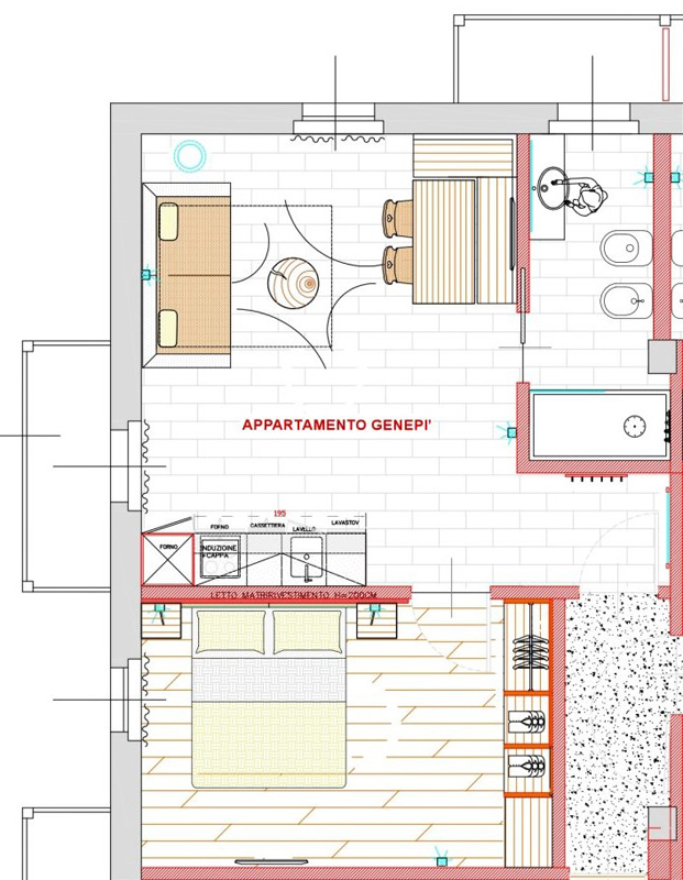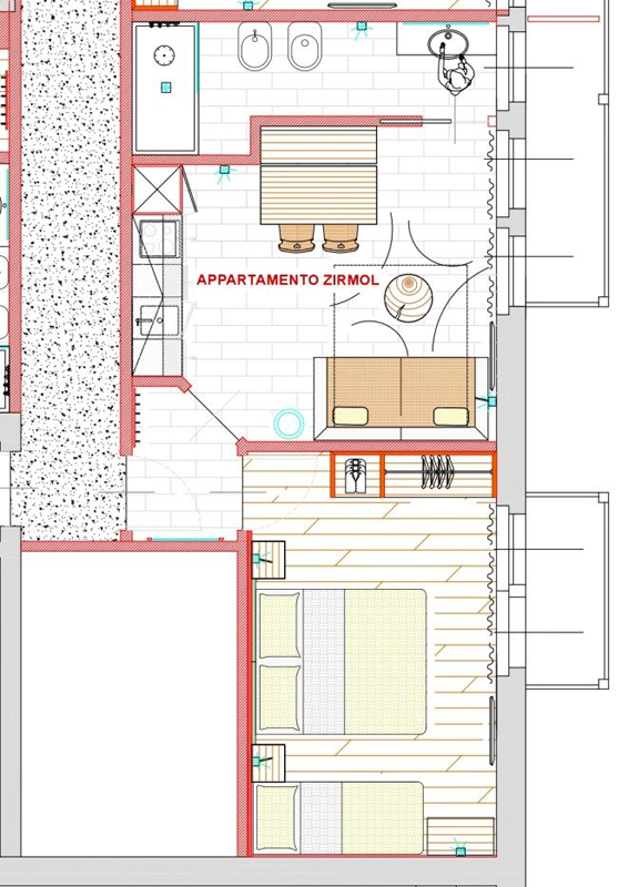 bilo 4 - 35 m² - 1 ložnice s manželskou postelí s oddělitelnými lůžky, obývací pokoj s kuchyňským koutem a rozkládacím gaučem pro 2 osoby, sociální zařízení, balkon