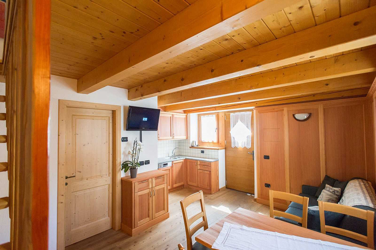 bilo 4/5 - 40 až 50 m² - 1 ložnice s manželskou postelí a případně 1 samostatným lůžkem, obývací pokoj s kuchyňským koutem a rozkládacím gaučem pro 2 osoby, sociální zařízení