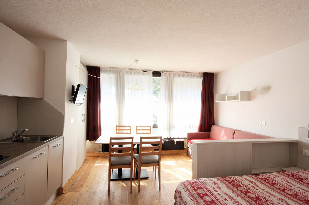 bilo 4 - 30 m² - 1 ložnice s manželskou postelí zpravidla bez okna a oddělená dřevěnou přepážkou, obývací pokoj s kuchyňským koutem, rozkládacím gaučem pro 1 či 2 osoby (možno i typ šuplík) a případně palandou, sociální zařízení; přestože může být počet lůžek vyšší, maximální povolená obsazenost apartmánu jsou 4 osoby