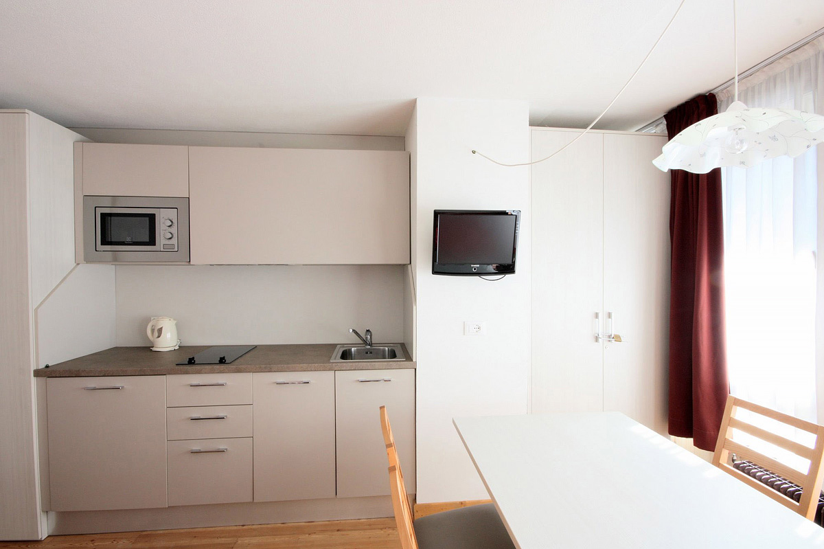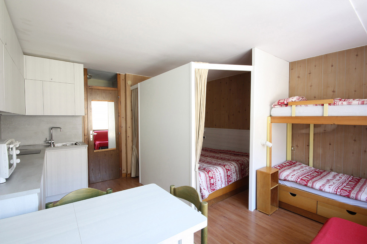 quadrilo 6 - 35 m² - 1 ložnice s manželskou postelí, 2 ložnice s 2 samostatnými lůžky, obývací pokoj s kuchyňským koutem a rozkládacím gaučem pro 2 osoby, sociální zařízení; přestože může být počet lůžek vyšší, maximální povolená obsazenost apartmánu je 6 osob