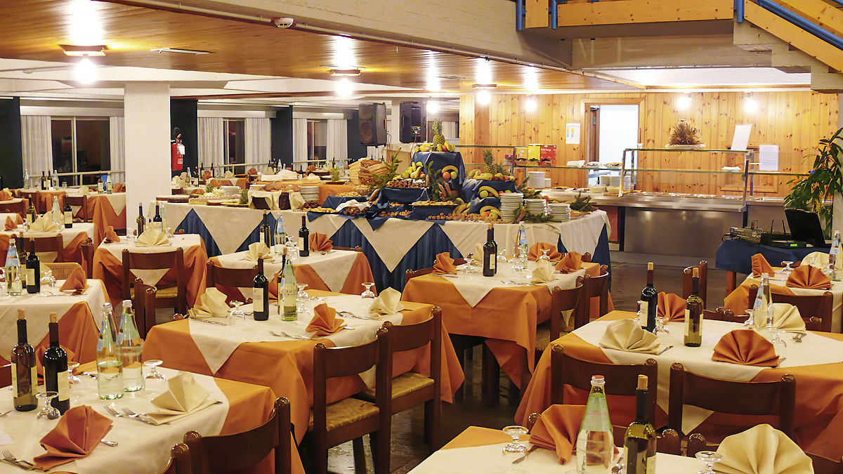 recepce / velká lobby / bar / wi-fi připojení k internetu, restaurace vyhrazená pro hotelové hosty, restaurace / bar, společenská místnost, televizní místnost, kongresový sál* až pro 200 osob, sluneční terasa s lehátky, dětský koutek s TV, miniklub (od 3 do 10 let; v italském jazyce), úschovna lyží a lyžařských bot, místnost pro úschovu zavazadel, výtah, vyhrazené parkoviště (1 auto / pokoj; většina parkovacích míst krytá)