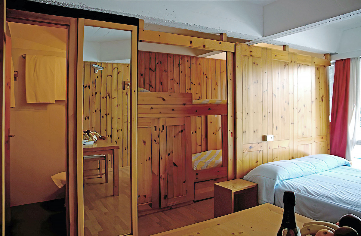 pokoj s manželskou postelí či 2 samostatnými lůžky a palandou (3. a 4. lůžka lze obsadit jen dětmi do nedovršených 13 let), sociální zařízení zpravidla se sprchou, zřídka balkon