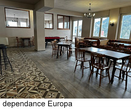 k hotelu patří i dependance Hotel Europa vzdálený cca 50 m; v některých termínech mohou být pokoje přiděleny v dependanci včetně stravování a ostatních služeb; popis Hotelu Europa je indentický s výjimkou vzdálenosti od sjezdovky, která je kratší - 100 m