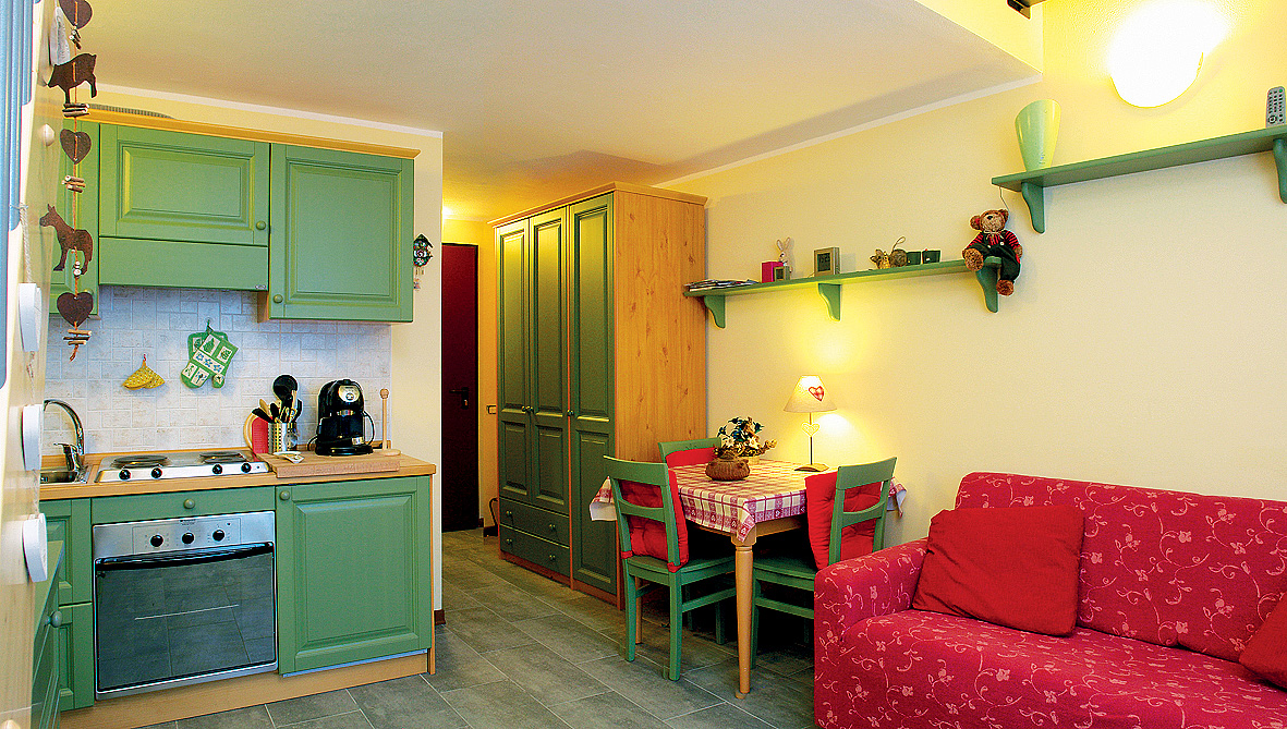 mono 2 - 18 m² - obývací pokoj s kuchyňským koutem a rozkládacím gaučem pro 2 osoby, sociální zařízení, balkon či vstup na zahradu