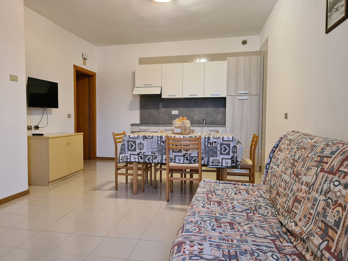 1 ložnice s manželskou postelí či 2 samostatnými lůžky, obývací pokoj s kuchyňským koutem a rozkládacím gaučem pro 2 osoby, sociální zařízení