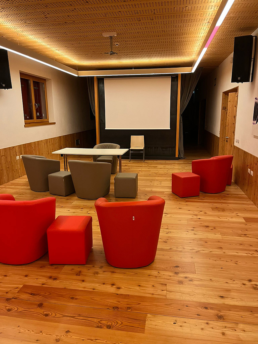 • skvělé podmínky pro střední skupiny do max 42 osob - pouze pro hosty vyhrazené společné prostory: komfortní jídelna, moderní sál s video projekcí, a dokonce možnost využití velké profesionální kuchyně pro společné vaření (s poplatkem a po předchozí dohodě)