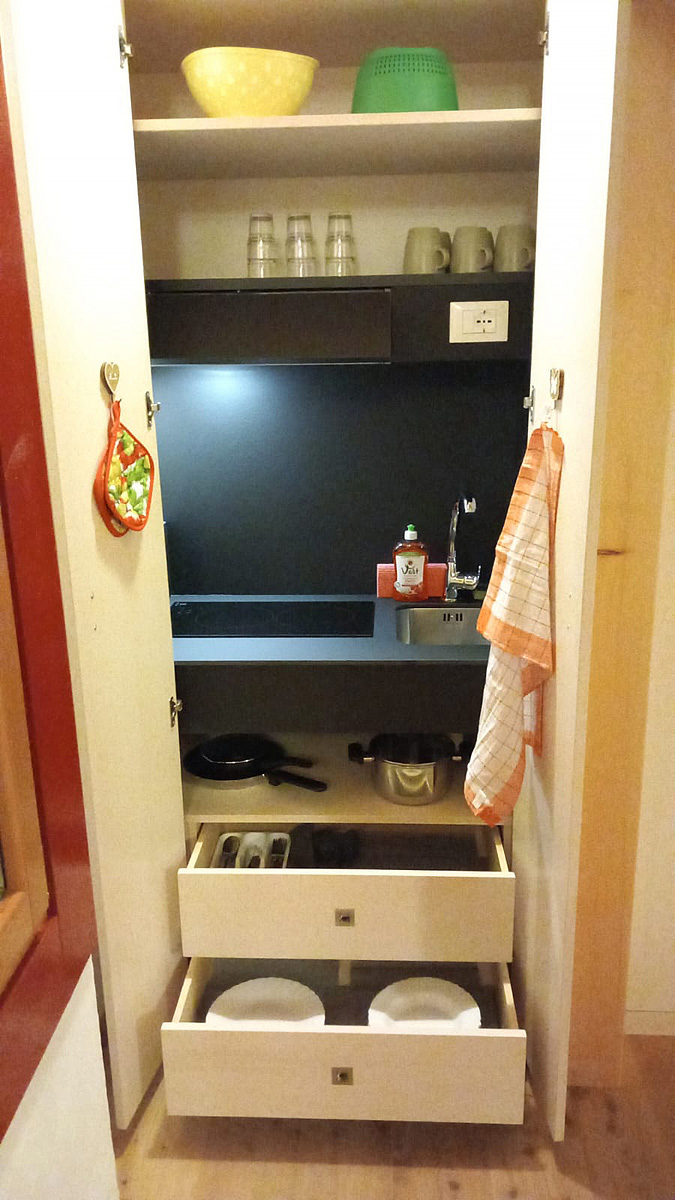 mono 2/3 - 25 m² - obývací pokoj s menším uzavíracím kuchyňským koutem, manželským lůžkem pro 2 osoby a případně přistýlkou pro 1 osobu