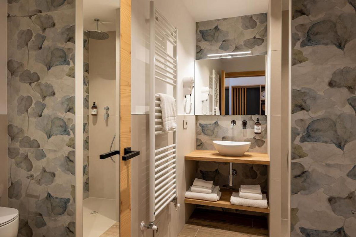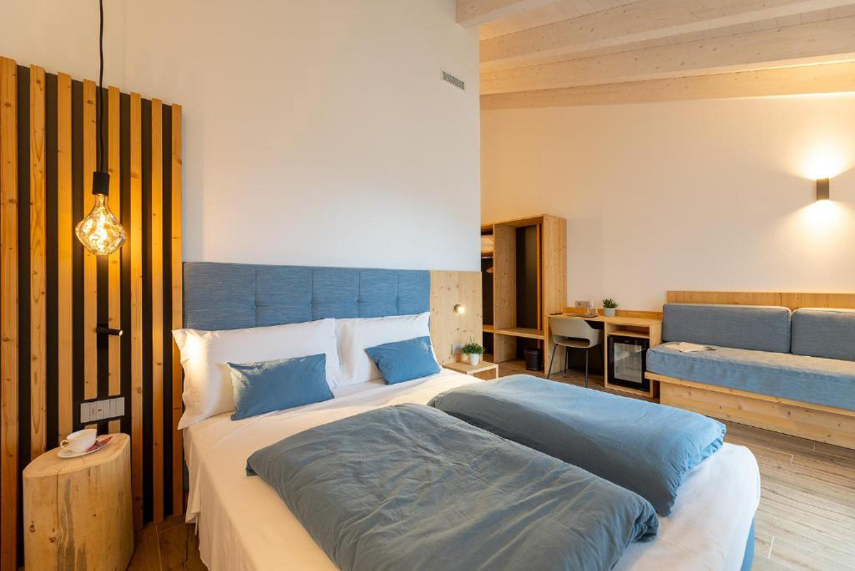 18 až 24 m² - pokoj s manželskou postelí či 2 samostatnými lůžky, sociální zařízení, balkon s výhledem na hory; 3. lůžko zpravidla formou pevného lůžka či přistýlky