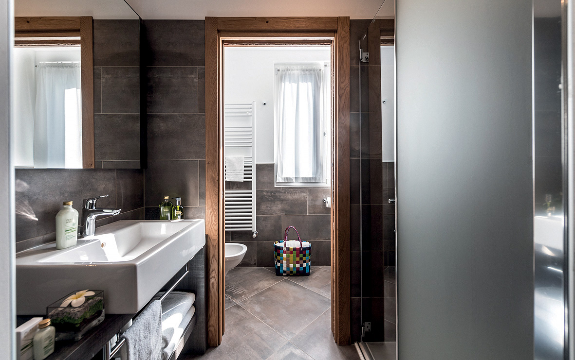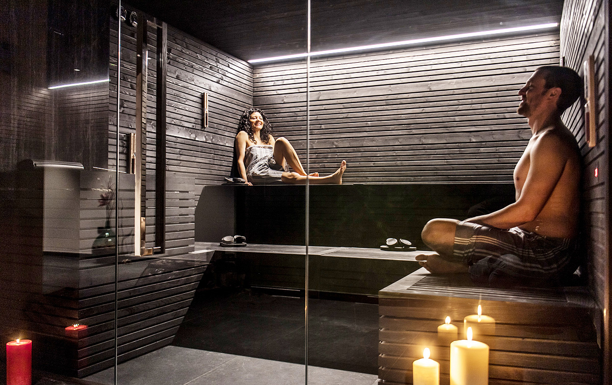 Suite Sauna 2/3/4 - 45 m² - pokoj s manželskou postelí či 2 samostatnými lůžky, 3. a 4. lůžko formou rozkládacího gauče či 2 samostatných lůžek, sociální zařízení, oddělené WC, šatna, privátní bio sauna