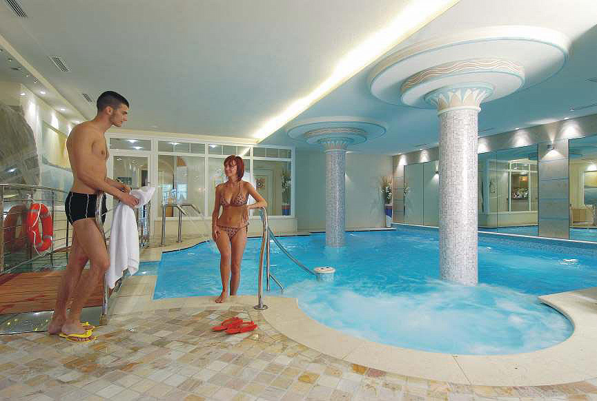 bazén s vířivkou, umělým vodopádem a protiproudem, finská sauna#, aroma pára#, vitárium#, chromoterapie#, Kneippův chodník#, relaxační koutek# s lehátky, masáže*, posilovna; v rámci relaxačního centra jsou zdarma nabízeny též bylinkové čaje; služby označené # mohou využívat děti až od 16 let