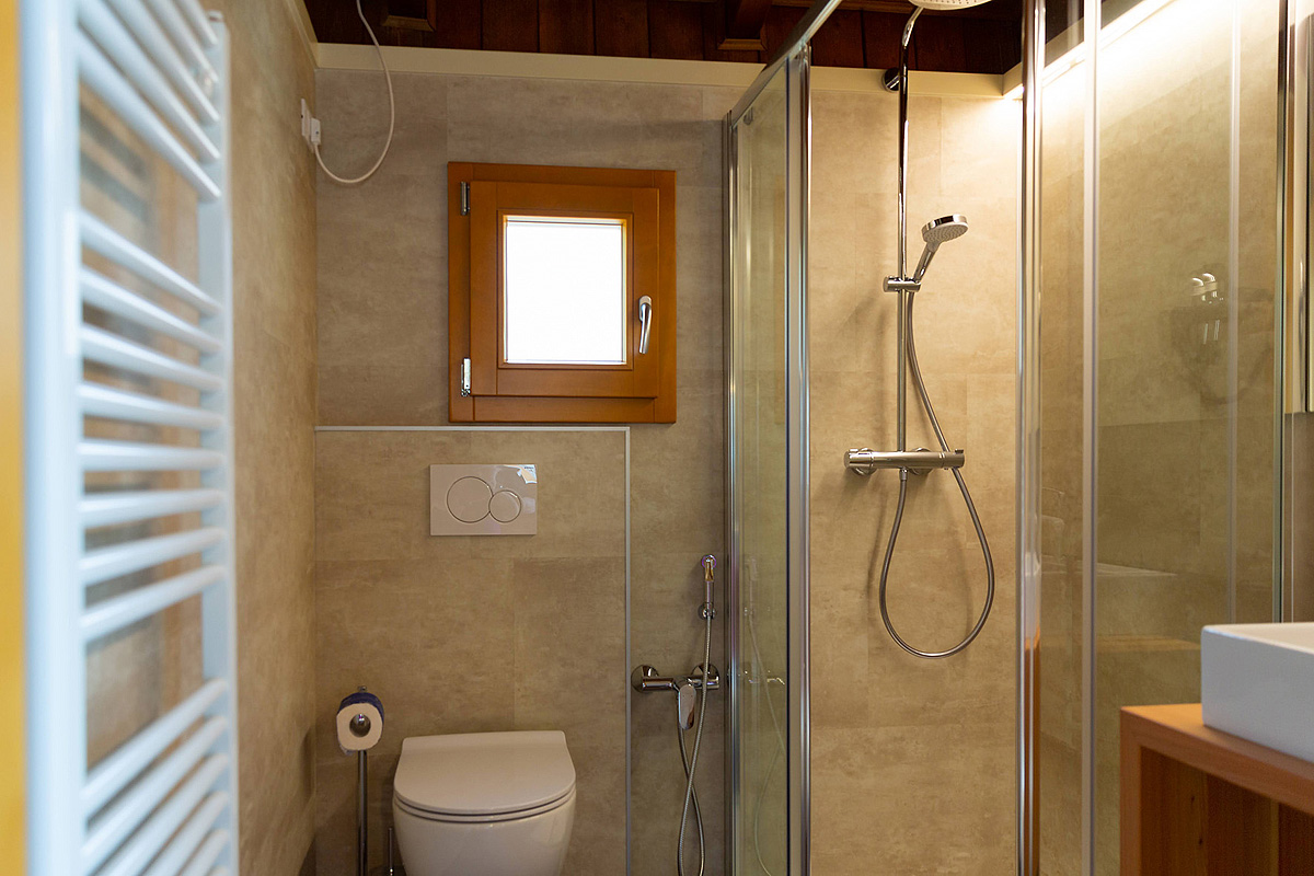 40 m² - 1 ložnice s manželskou postelí a 1 samostatným lůžkem, obývací pokoj s kuchyňským koutem a rozkládacím gaučem pro 2 osoby, sociální zařízení, terasa; maximální obsazenost apartmánu jsou 4 dospělí a 1 dítě do nedovršených 12 let; nové, velmi pěkně a moderně vybaveno
